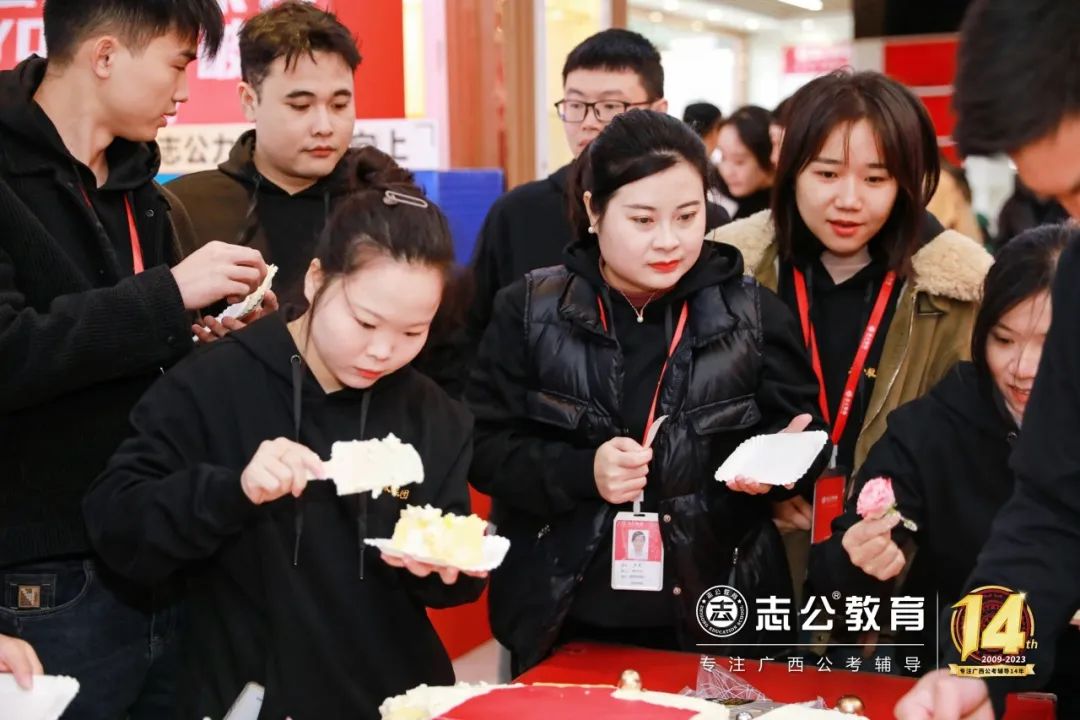 這個(gè)蛋糕不僅象征著志公走過的14個(gè)輝煌歲月,更代表了志公未來更加美好的明天。在場(chǎng)的所有員工都分享了這份喜悅和甜蜜,共同祝愿志公教育越來越好。