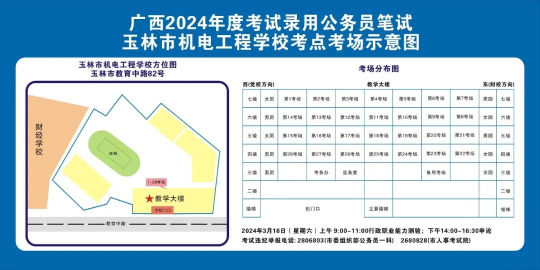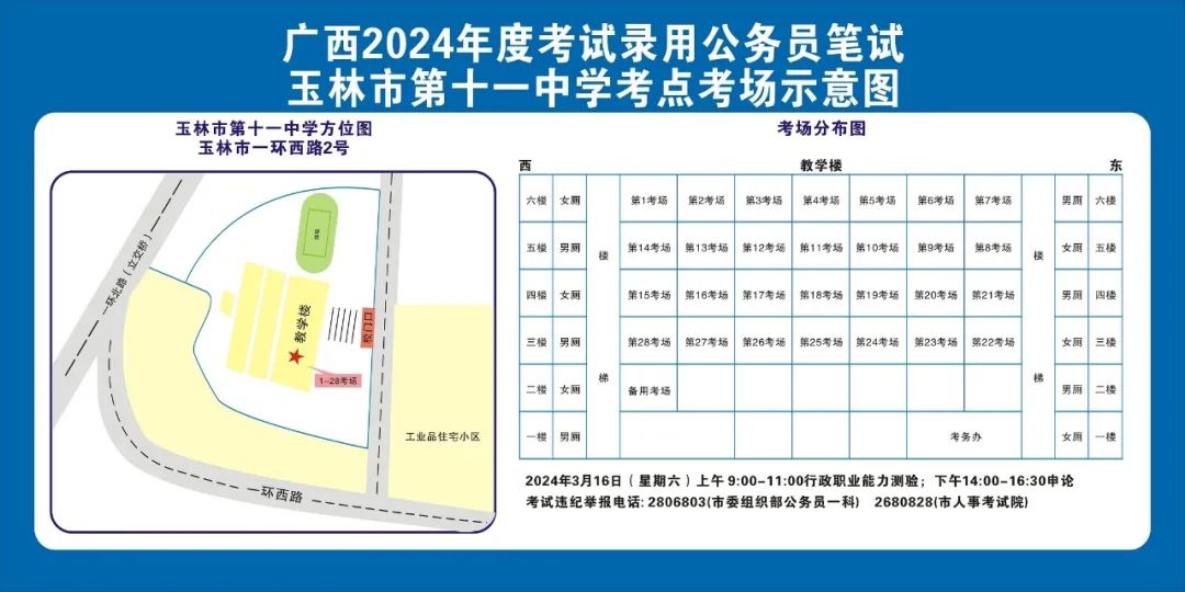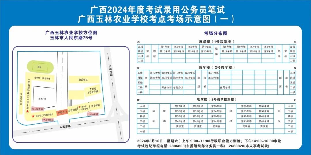 請(qǐng)及時(shí)登錄“廣西人事考試網(wǎng)”打印筆試準(zhǔn)考證并妥善保管,仔細(xì)查看準(zhǔn)考證上的考點(diǎn)信息。本次考試玉林考區(qū)共設(shè)10個(gè)考點(diǎn),各考點(diǎn)名稱、考點(diǎn)詳細(xì)地址如下: