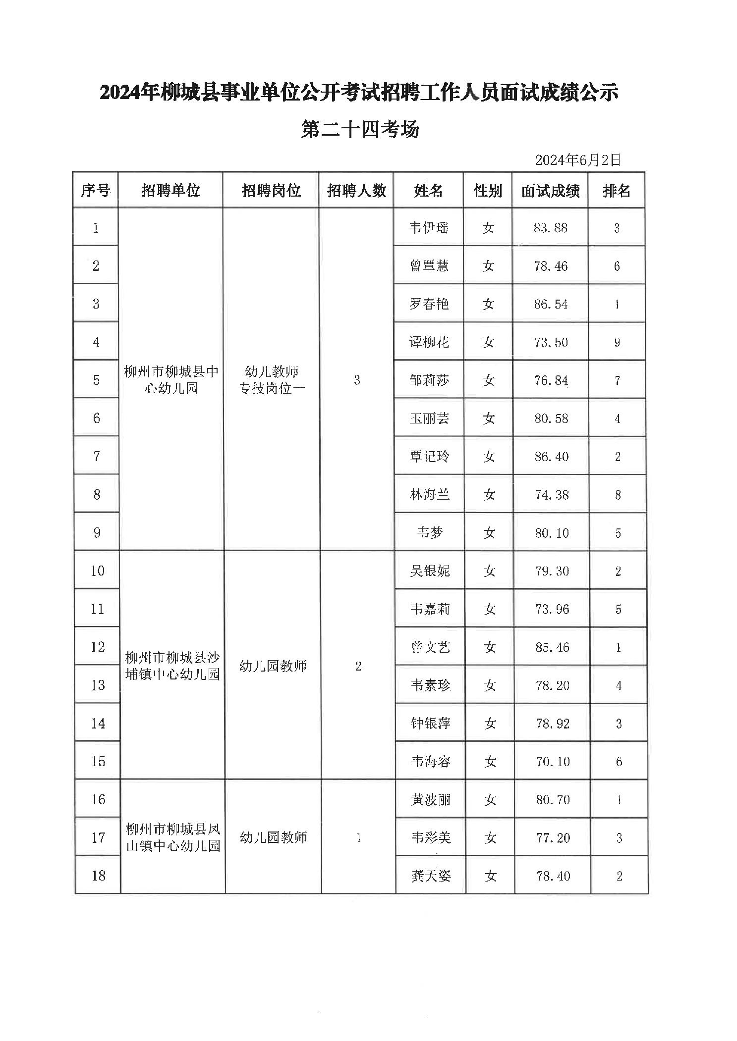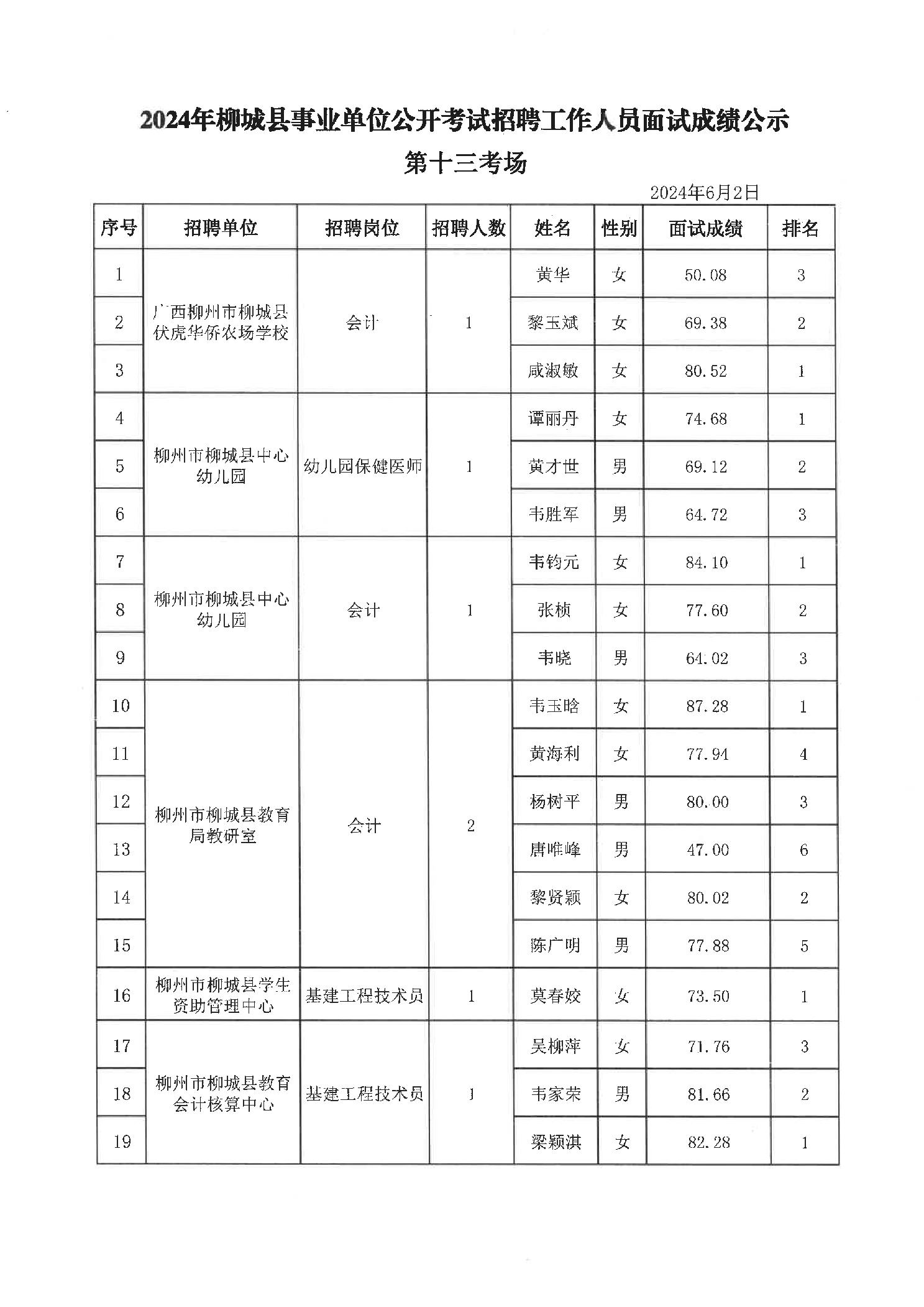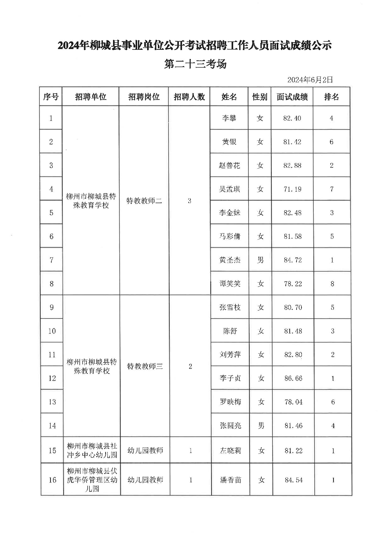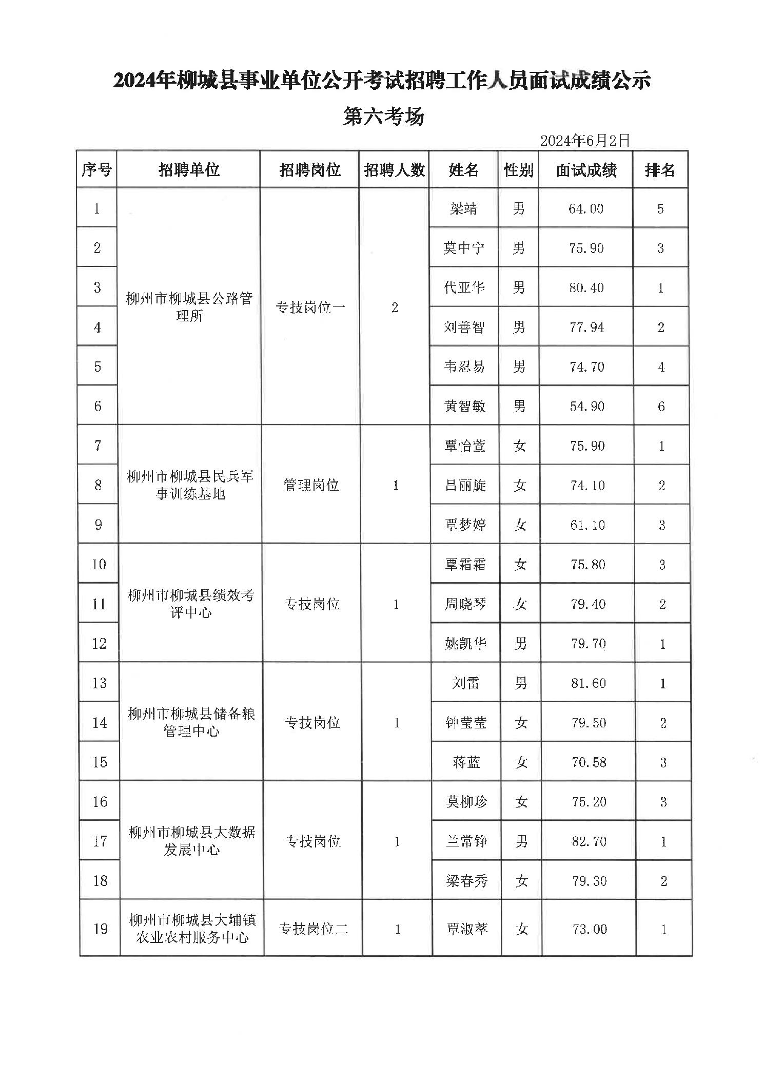 原文標(biāo)題:2024年柳州市事業(yè)單位公開(kāi)考試招聘工作人員面試成績(jī)公示(柳城縣崗位)