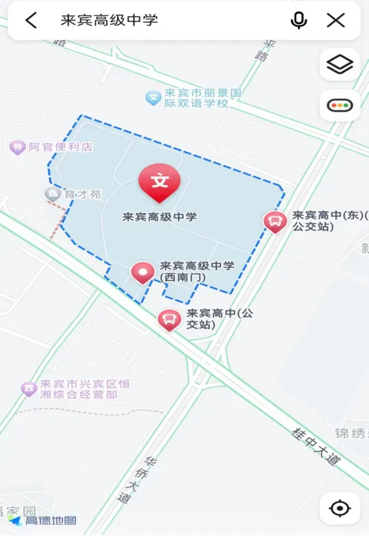 ▲來賓高級(jí)中學(xué)交通指引圖(來賓市興賓區(qū)桂中大道588號(hào))。