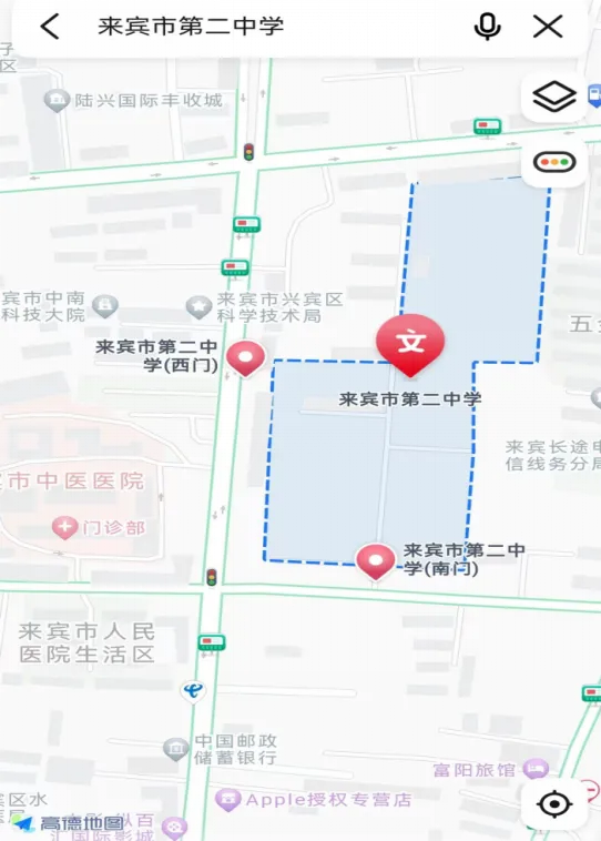 ▲來賓市第二中學(xué)交通指引圖(來賓市興賓區(qū)北四路62號(hào))。