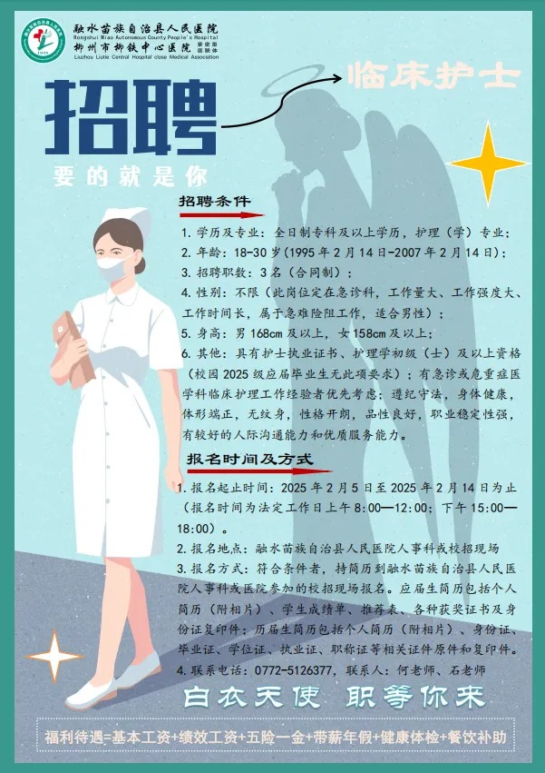 原文標(biāo)題:2025年柳州融水苗族自治縣人民醫(yī)院招聘臨床護士3名