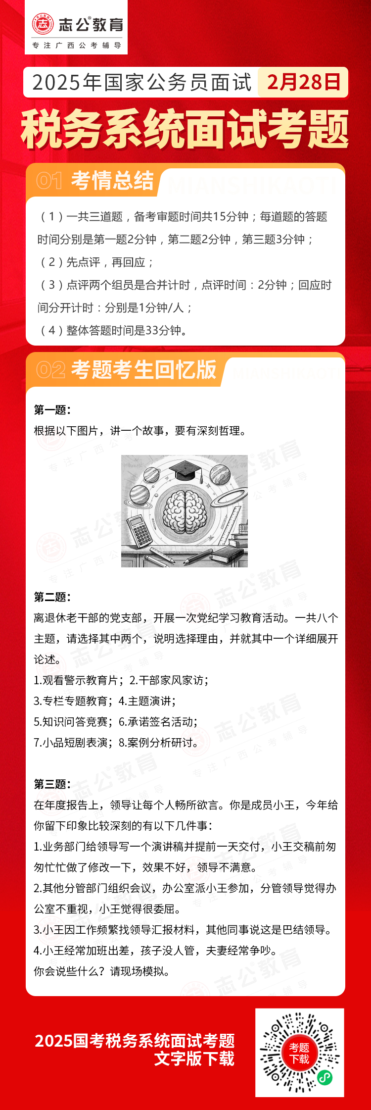 2025年2月28日國考稅務(wù)局面試考題(考生回憶版)