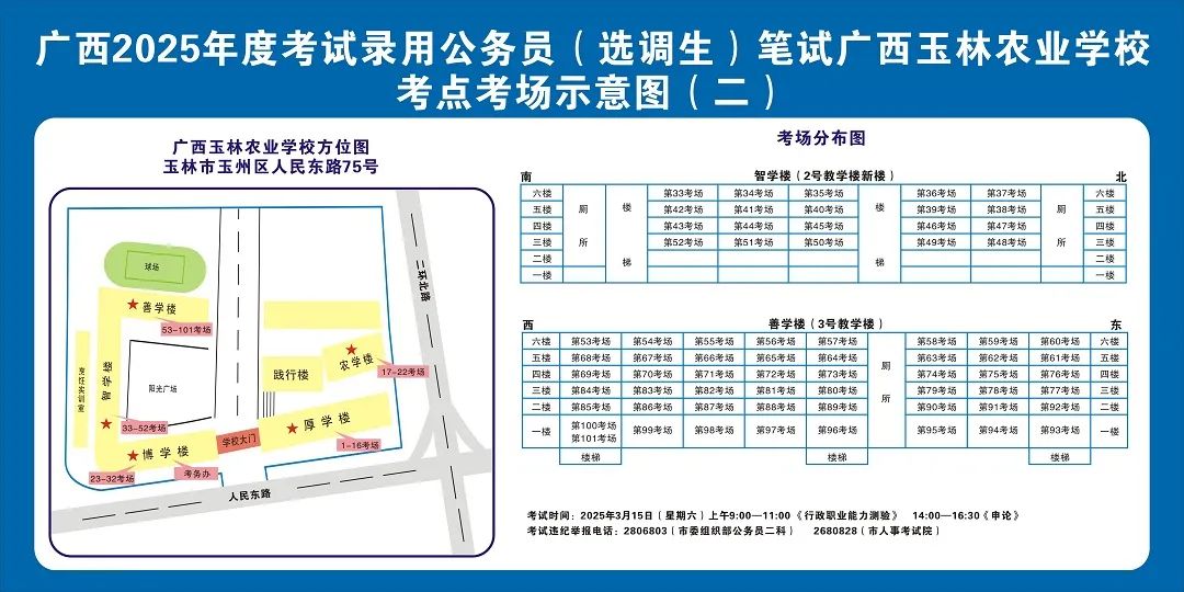 廣西2025年度考試錄用公務(wù)員(選調(diào)生)筆試將于3月15日舉行,為進一步提升玉林考區(qū)服務(wù)保障質(zhì)量,現(xiàn)就有關(guān)注意事項提示如下,請廣大考生做好應(yīng)試準(zhǔn)備工作,準(zhǔn)確掌握考試時間、考點地址及相關(guān)注意事項。