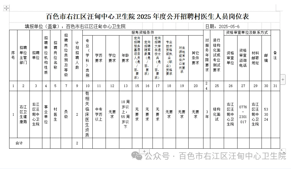 3.報名地點(diǎn):百色市右江區(qū)汪甸中心衛(wèi)生院三樓辦公室,聯(lián)系人:林紅青 聯(lián)系電話:0776-2301017。因報名信息填寫錯漏等所造成的后果,本單位不負(fù)任何責(zé)任。