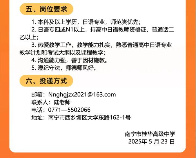 2025年廣西南寧市桂華高級中學(xué)面向社會(huì)公開招聘日語老師2人