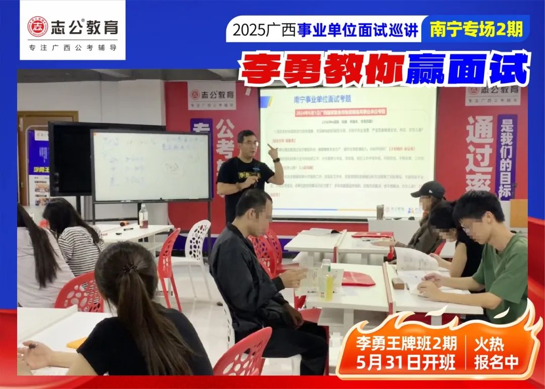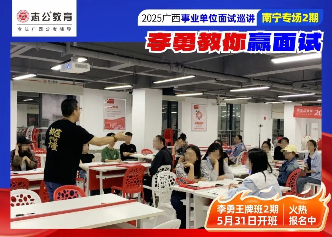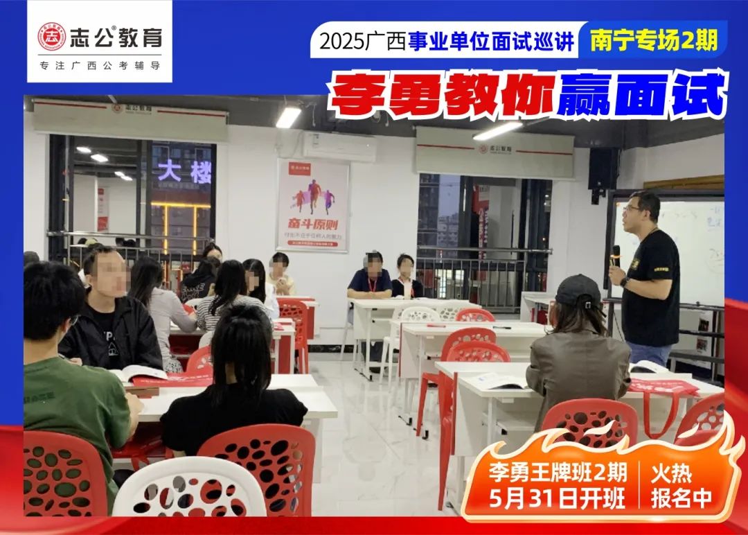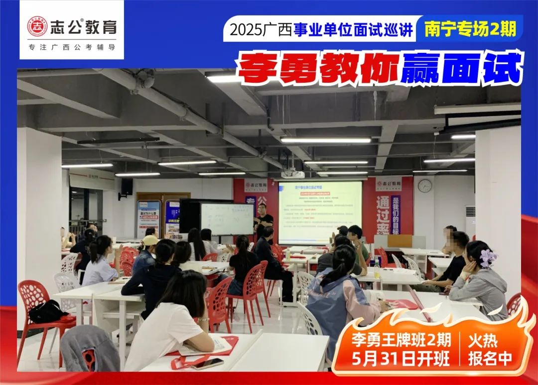 隨著2025廣西事業(yè)單位——李勇教你贏面試【南寧專場2期】線下巡講落幕,這場"面試攻堅戰(zhàn)",不僅點燃了備考熱情,更讓志公教育"幫助人才實現(xiàn)更高質(zhì)量的就業(yè)"的使命,在八桂大地結(jié)出更多碩果。