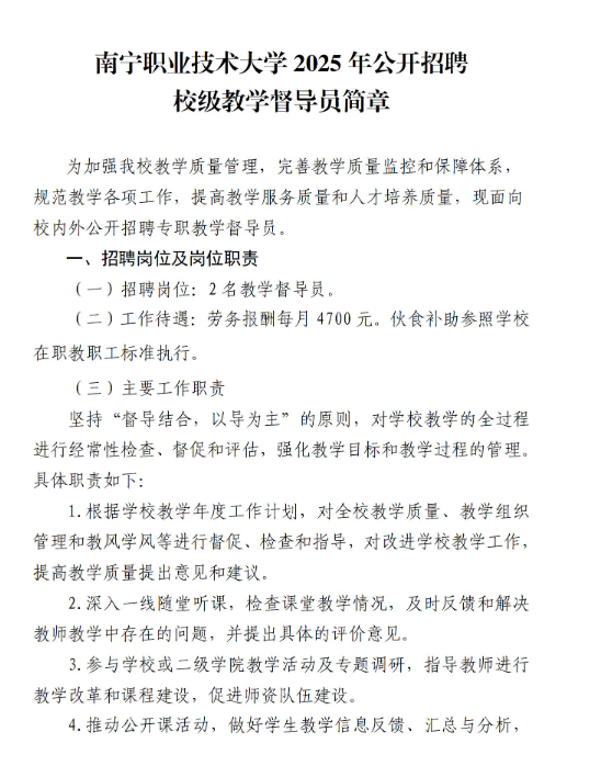 2025年廣西南寧職業(yè)技術(shù)大學(xué)招聘校級教學(xué)督導(dǎo)員2人
