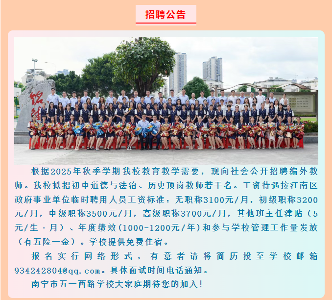 2025年廣西南寧市五一西路學校招聘老師若干名