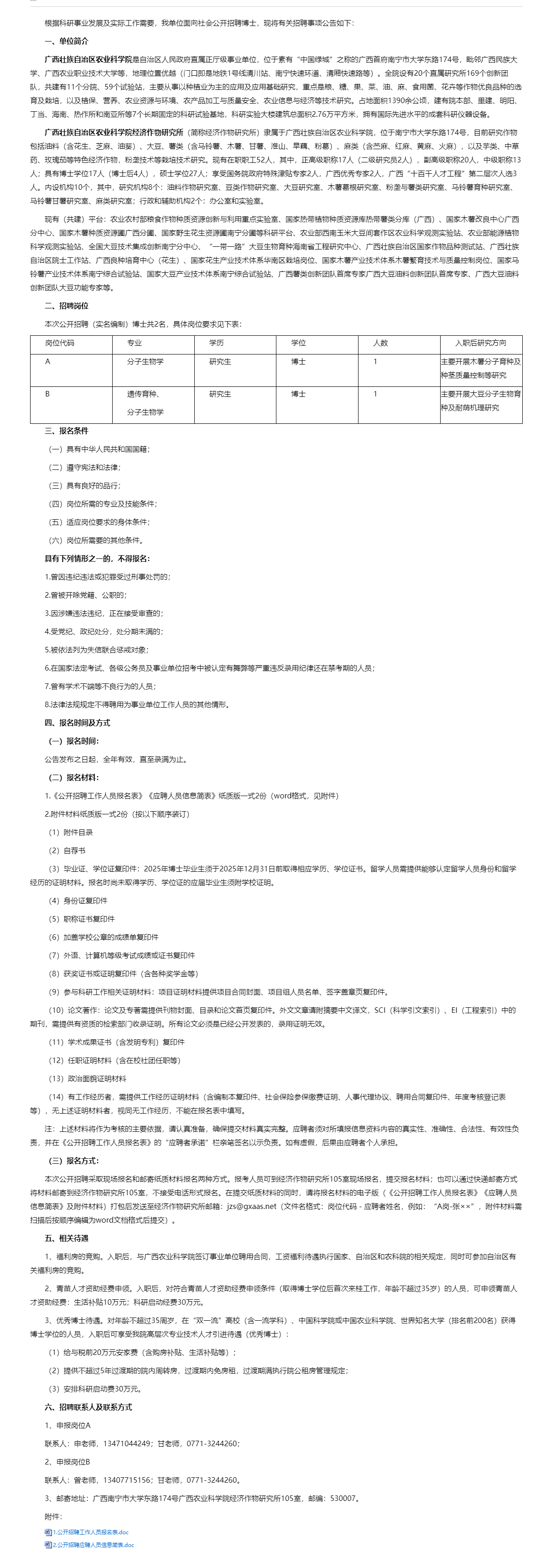 廣西農業(yè)科學院經濟作物研究所2025年博士公開招聘公告