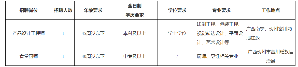本次公開招聘2人,需求崗位、人數(shù)、學(xué)歷專業(yè)要求等資格條件,工作內(nèi)容、職位要求詳見附件《廣西真龍彩印包裝有限公司2025年第一批次人才招聘需求表》