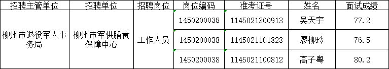 2025年柳州市事業(yè)單位公開考試招聘工作人員面試成績(jī)