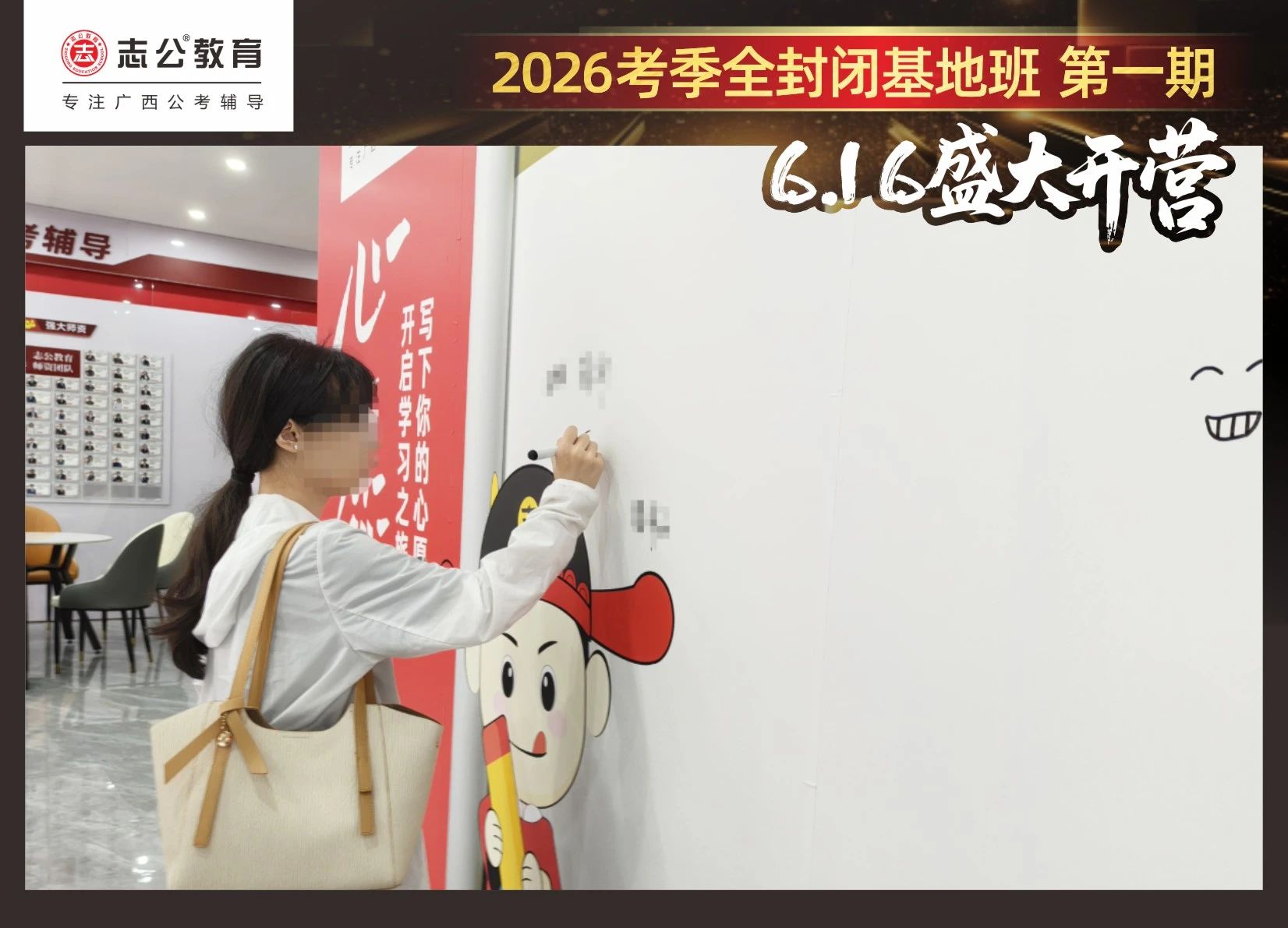 由于這段時間受臺風影響,南寧迎來下雨天,但學員們滿懷先一步備考,快一步成功圓夢的滿滿炙熱信心,早早就在志公教育(中關(guān)村)全封閉基地前臺等候,6月16日,志公教育26考季全封閉基地班第1期的學員們齊聚一堂,正式開啟他們的公考備戰(zhàn)之旅。簽到環(huán)節(jié)作為基地班課程的第一站,不僅是對學員們的歡迎儀式,更是他們邁向夢想的第一步。
