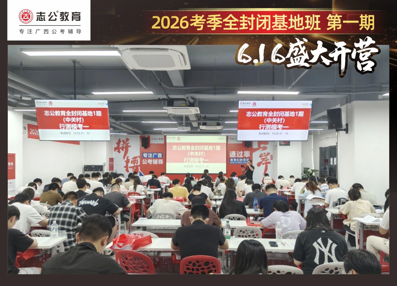 大家稍作休息之后,就是咱們期待已久的開班典禮啦!學員們在班主任的引導(dǎo)下分組就坐。大家目光灼灼,熱情高漲,迫不及待想要開啟學習模式。看這座無虛席的盛況,志公26考季全封閉基地班第1期課程實力名不虛傳,各位學員用飽滿的熱情和積極的態(tài)度迎接此次課程的開展,期待大家能夠完成自己的蛻變和成長!