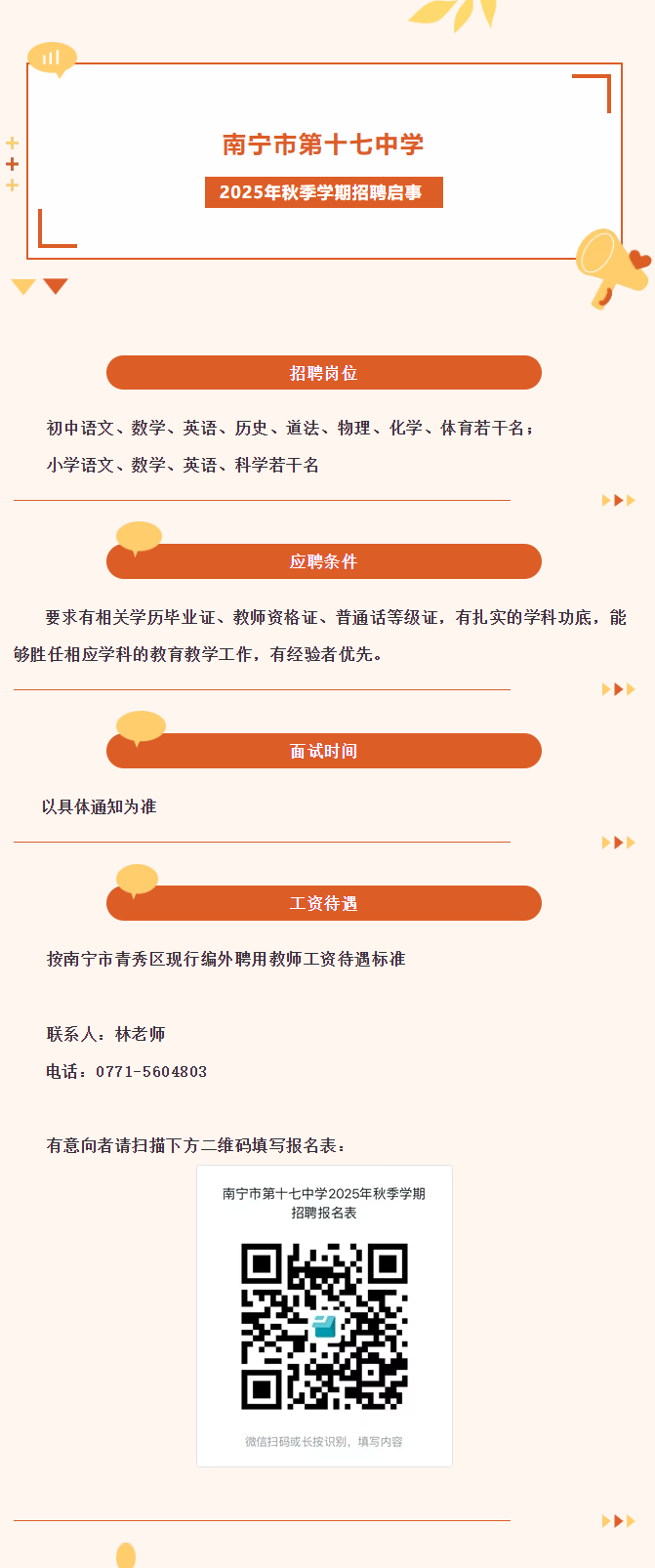 原文標題:南寧市第十七中學2025年秋季學期招聘啟事