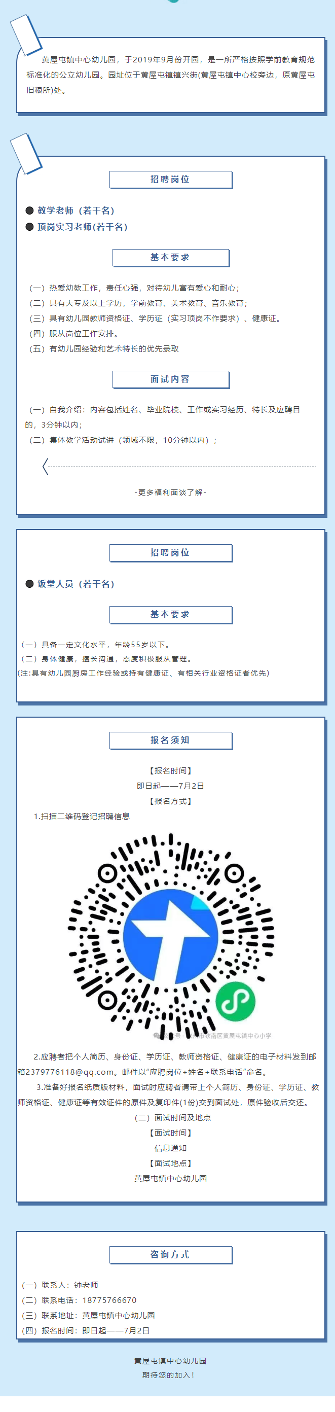 2025年黃屋屯鎮(zhèn)中心幼兒園春招聘教學(xué)老師、頂崗實(shí)習(xí)老師若干名