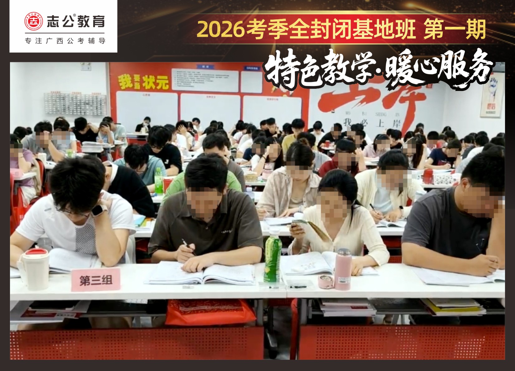 近日,志公教育基地班正式開課后,學員們?nèi)孢M入緊張而有序的封閉式備考狀態(tài)。為確保每一位學員都能在最佳狀態(tài)下高效備考,志公教育不僅提供了優(yōu)質(zhì)的教學資源和師資團隊,更從住宿環(huán)境、飲食健康、學習空間、紀律監(jiān)管、心理關(guān)懷、激勵機制等多個維度出發(fā),精心打造了一系列保障措施,確保每一位學員都能在最佳狀態(tài)下備考,真正實現(xiàn)“學得安心、住得舒心、吃得放心”。