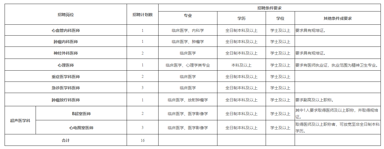 注:初中級職稱應(yīng)聘人員原則上年齡要求為35周歲及以下;如為副高以上職稱,年齡可放寬至45周歲;學(xué)歷層次高者優(yōu)先。醫(yī)師崗位中如要求具有規(guī)培證條件的是指已取得規(guī)培合格證書(含通過規(guī)培結(jié)業(yè)考試未領(lǐng)合格證書)或已取得中級及以上職稱人員。