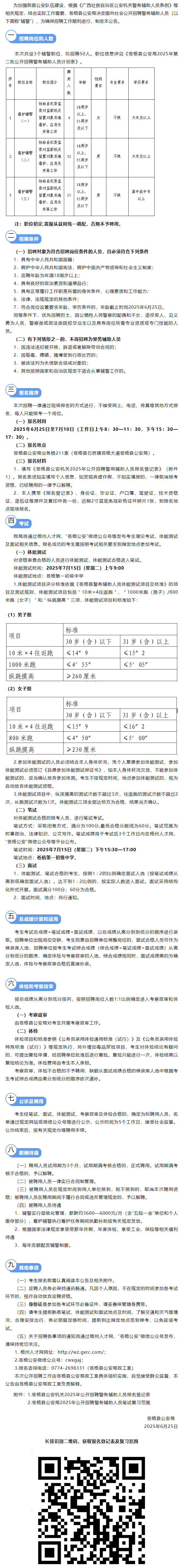 2025年蒼梧縣公安局第二批公開招聘警務(wù)輔助人員50人