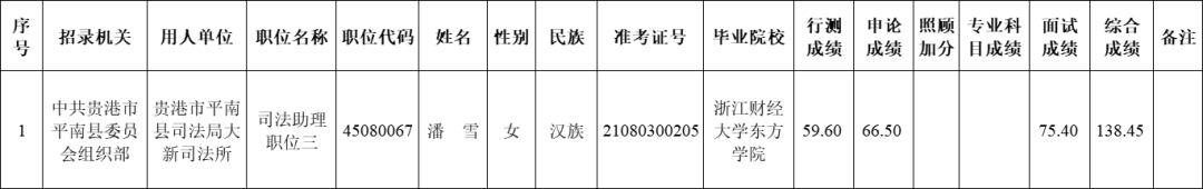 | 6.6 | 貴港市司法局2025年度考試錄用公務員擬錄用人員名單 |