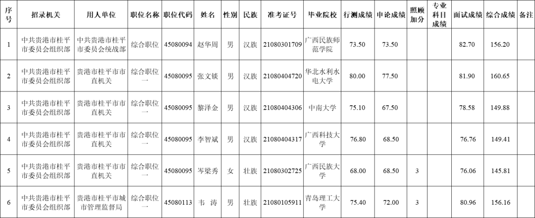 | 6.22 | 貴港市桂平市2025年度考試錄用公務員擬錄用人員名單(二) |
