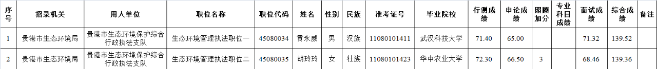 | 6.6 | 貴港市生態(tài)環(huán)境局2025年度考試錄用公務員擬錄用人員名單 |