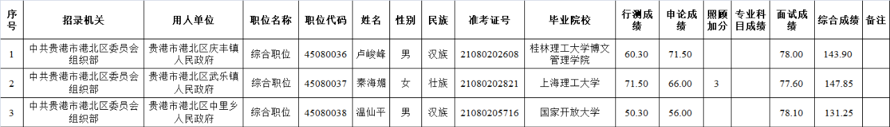 | 6.6 | 貴港市港北區(qū)2025年度考試錄用公務員擬錄用人員名單(一) |