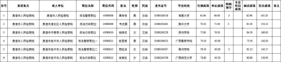 | 6.15 | 貴港人民檢察院2025年度考試錄用公務員擬錄用人員名單 |