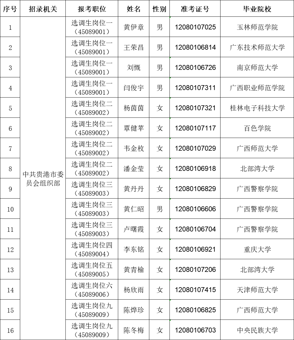 | 6.6 | 貴港市人力資源和社會保障局2025年度考試錄用公務員擬錄用人員名單 |