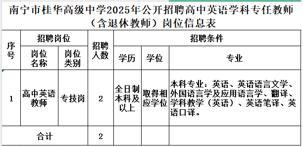 2.現(xiàn)場報名。應聘者持有關材料直接到南寧市桂華高級中學校辦報名。