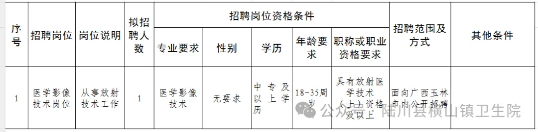 報(bào)名地點(diǎn):陸川縣橫山鎮(zhèn)衛(wèi)生院四樓院辦公室。(咨詢電話:0775-7125668)。