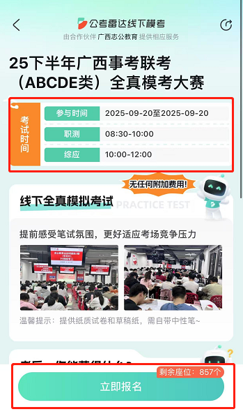 1??全zhen模擬高度還原:嚴(yán)格按照廣西事業(yè)單位聯(lián)考流程和時(shí)間進(jìn)行,試卷對(duì)標(biāo)zhen題,考場(chǎng)安排也高度還原,給你沉浸式考試體驗(yàn)。