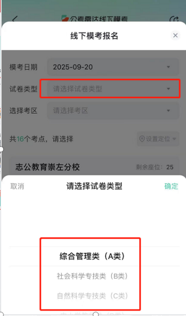 3??確認(rèn)模考類別