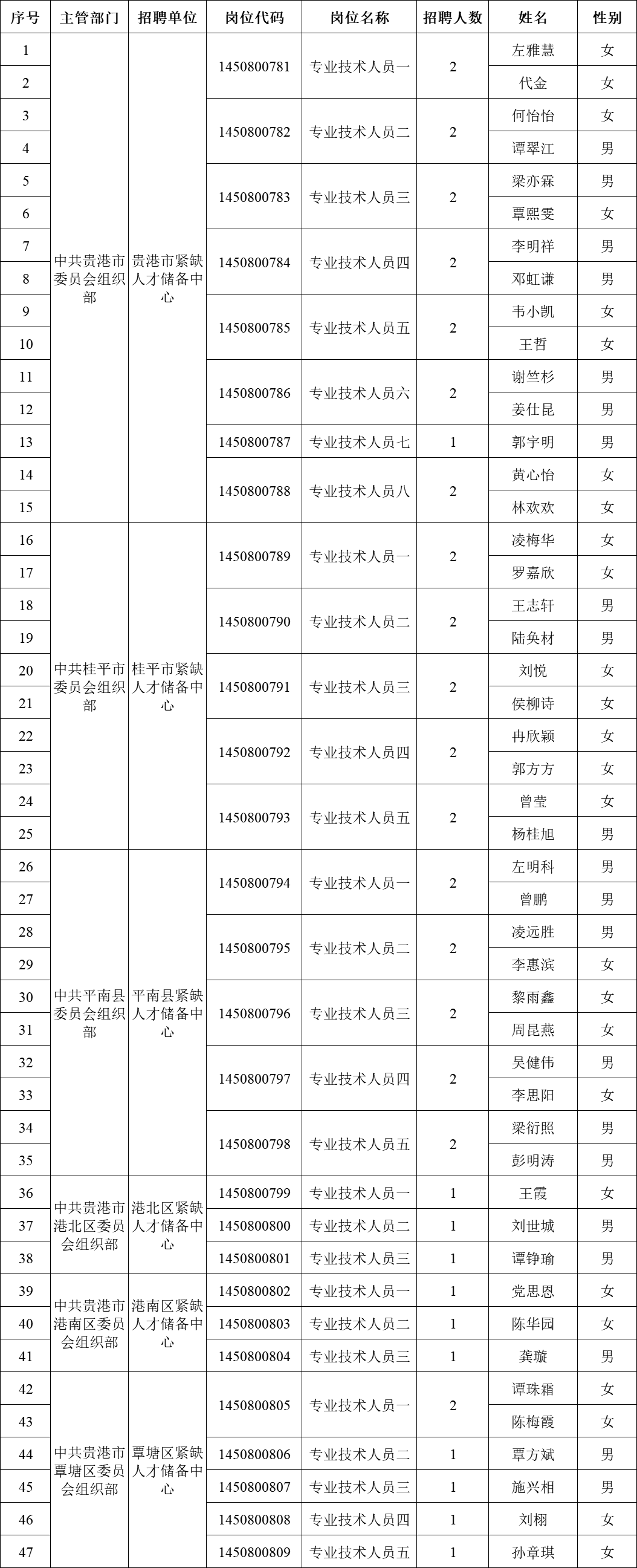 原文標題:2025年貴港市引進重點領(lǐng)域重點產(chǎn)業(yè)急需緊缺(高層次)人才進入考察人員名單公告