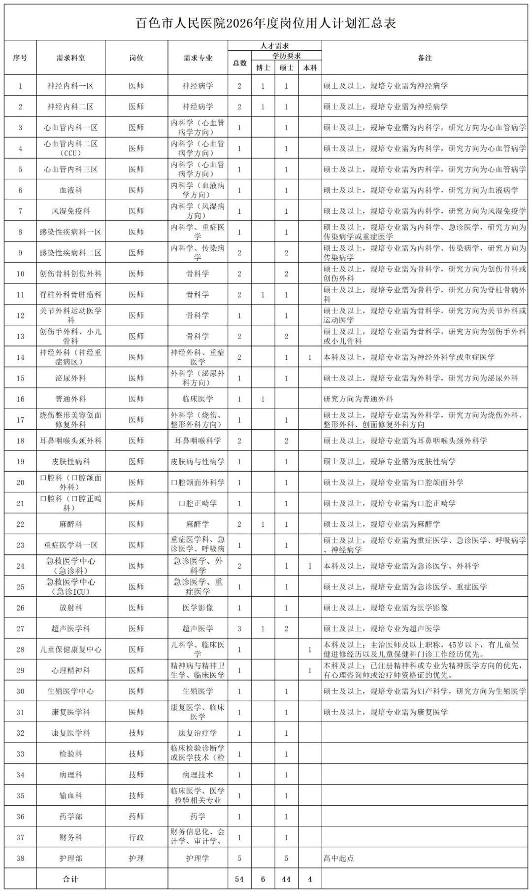 4.具備崗位所需的專業(yè)知識(shí)、技術(shù)能力和科研能力,符合崗位所對(duì)應(yīng)的學(xué)歷、學(xué)位及其他要求。醫(yī)師崗位要求具有醫(yī)師資格證、醫(yī)師執(zhí)業(yè)證、住院醫(yī)師規(guī)范化培訓(xùn)合格證書。