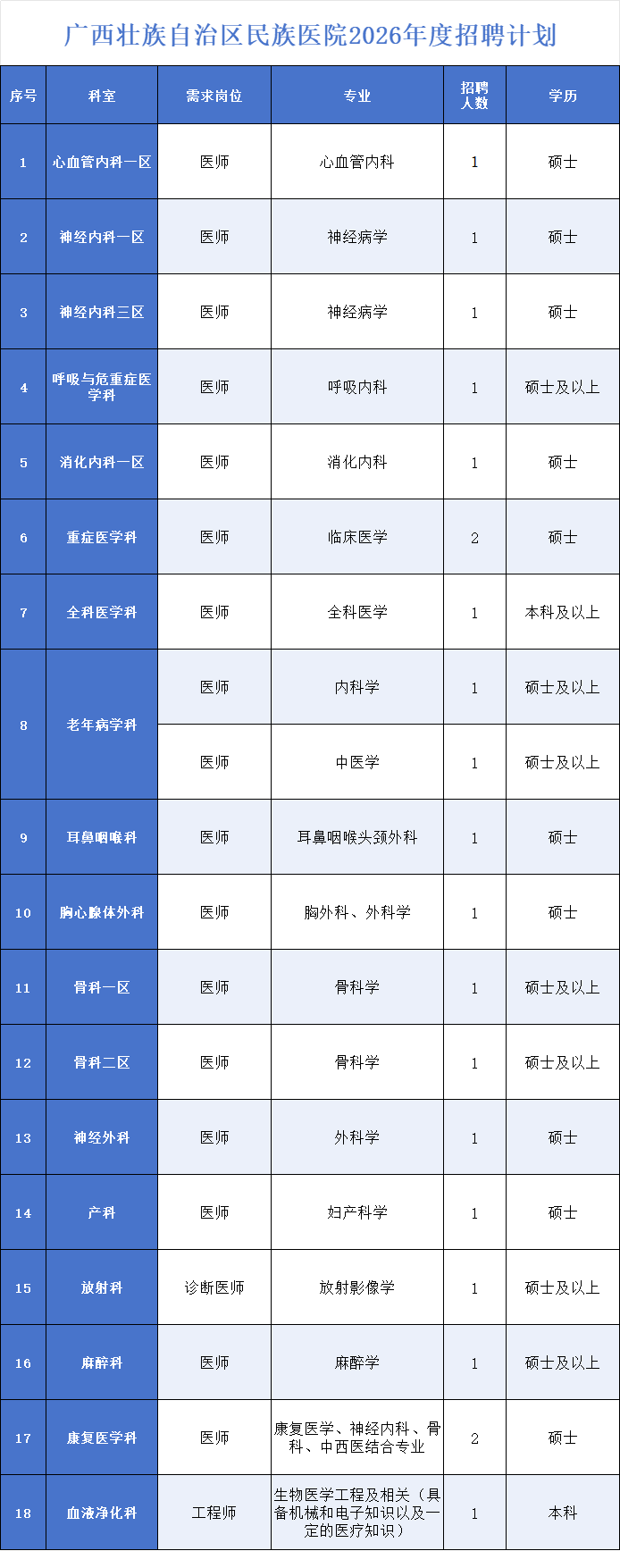 (地址:廣西南寧市西鄉(xiāng)塘區(qū)明秀東路232號(hào)廣西壯族自治區(qū)民族醫(yī)院8號(hào)樓3樓人事科,聯(lián)系人:莫老師,郵編:530001,聯(lián)系電話:0771-3110058)