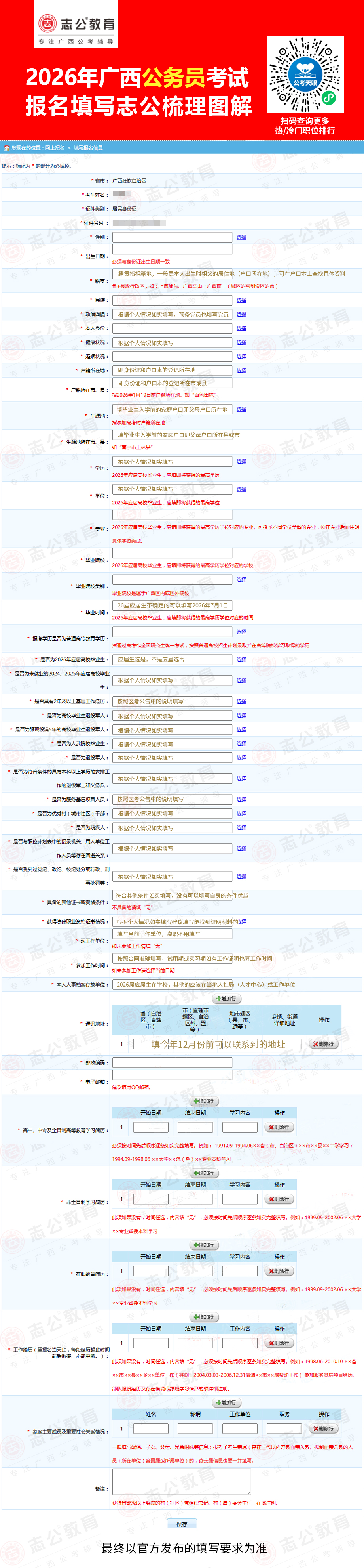 2026年廣西公務(wù)員報(bào)名信息填寫(xiě)參考