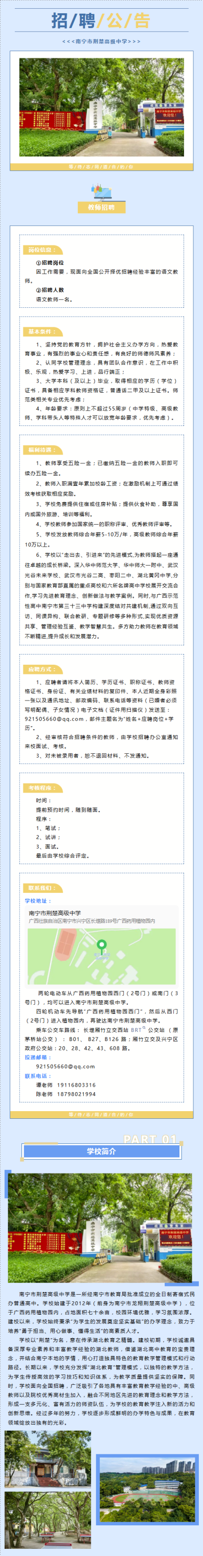 原文標題:南寧市荊楚高級中學招聘語文教師