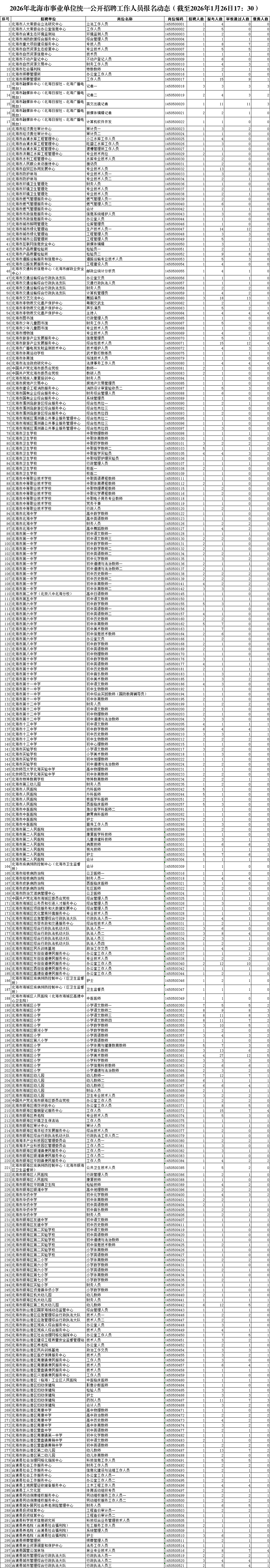 2026年北海市事業(yè)單位統(tǒng)一公開招聘工作人員報名動態(tài)(截至2026年1月26日17:30)