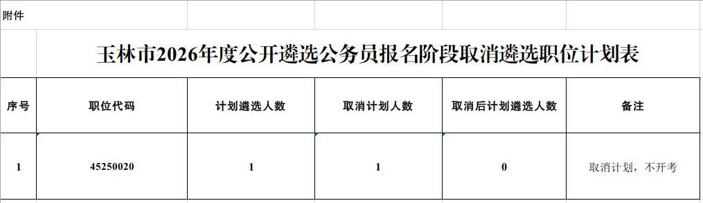 附件:玉林市2026年度公開遴選公務(wù)員報(bào)名階段取消遴選職位計(jì)劃表